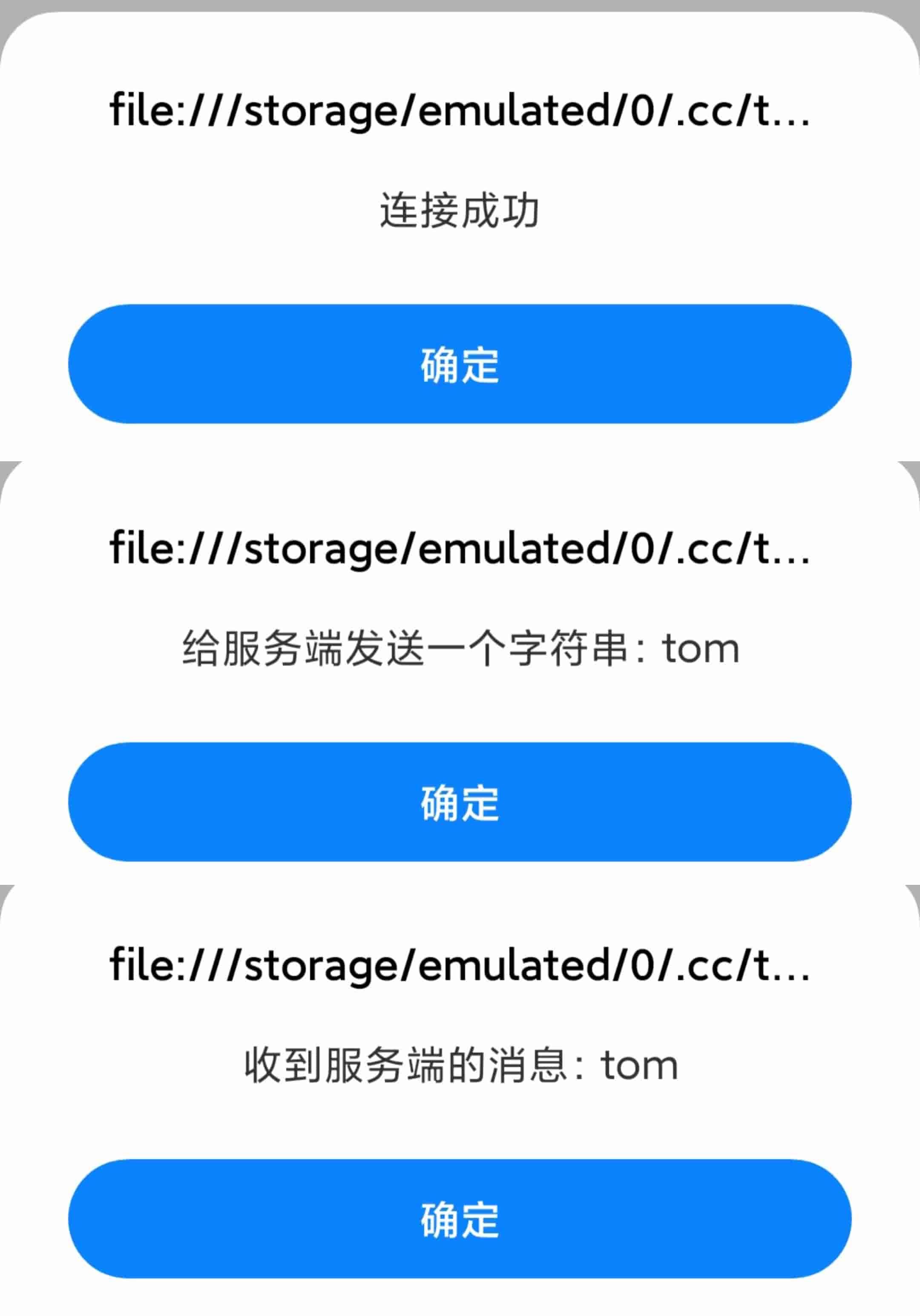 <script>ws = new WebSocket("ws://127.0.0.1:2000");ws.onopen = function() { alert("连接成功"); ws.send('tom'); alert("给服务端发送一个字符串:tom");};ws.onmessage = function(e) { alert("收到服务端的消息:" + e.data);}</script>双击打开