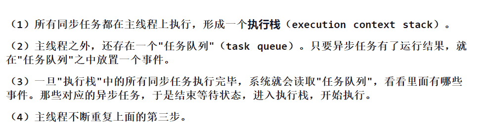 (2)主线程之外还存在一个任务队列,只需异步任务有了结果,就在任务队列放置一个事件(比方回调函数)