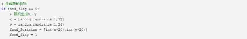 当游戏界面中的食物数量为0时,需要重新生成食物。利用random函数来生成随机位置