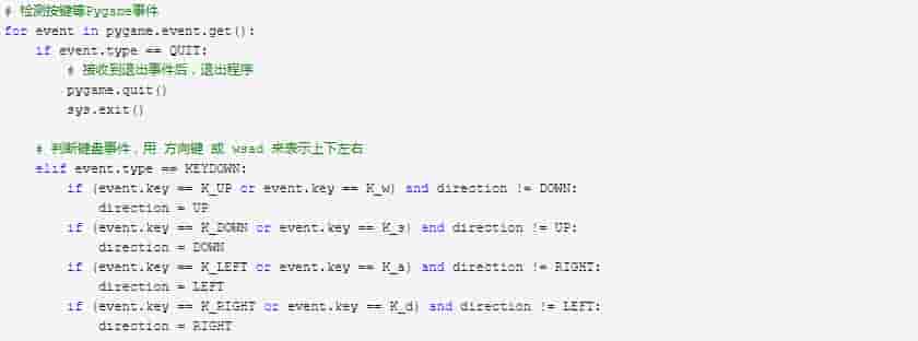 我们需要控制贪吃蛇的上下左右的移动,这里通过监听键盘输入来实现。利用键盘中的上下左右键或者WASD键来控制贪吃蛇的运动。