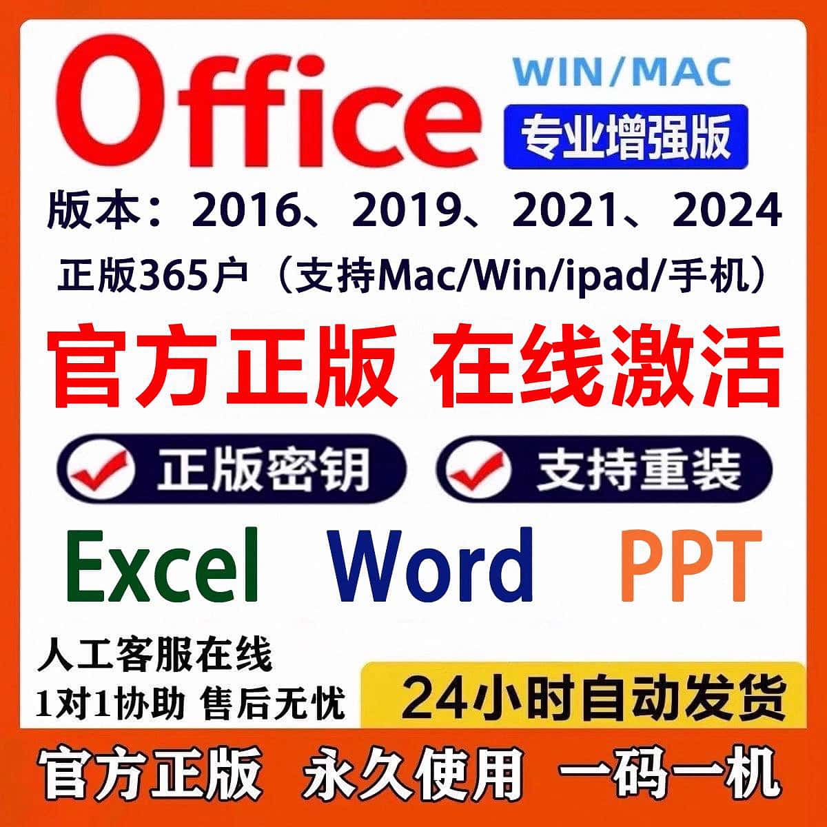 正版office2024/2021/2019专业增强版2016产品密钥2013永久激活