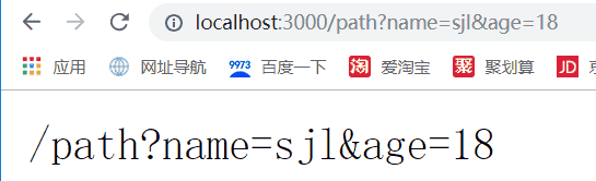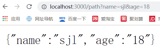 访问http://localhost:3000/path?name=sjl&age=18为例,效果图: