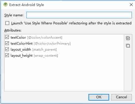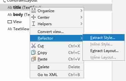 Android studio 提供了提取组件样式来作为 style 使用功能,这样大大地方便了开发人员。在设计设图中选择一个要提取 style 的组件,而后右键单击,在弹出菜单中选择 Refactor 而后选择 Extract Style... ,