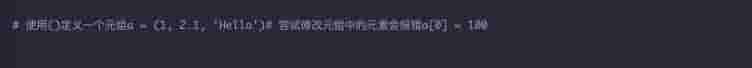 元组和列表相似,唯一的不同是元组中的元素在初始化之后不能再更改,因而可以了解成一个只读的变量。