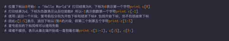 使用切片可以访问字符串中的某个字符或者某个片段。