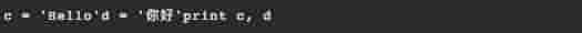 字符串也就是我们经常接触到的文本,可以往里面放任意长度的内容,用单引号或者双引号括起来。应当注意,中文以及中文符号只能出现在字符串內,假如在下面第三行中使用了中文输入法的逗号 ,Python将报错。