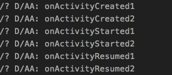 this.registerActivityLifecycleCallbacks(object : ActivityLifecycleCallbacks { override fun onActivityCreated(activity: Activity?, savedInstanceState: Bundle?) { Log.d("AA", "onActivityCreated") } override fun onActivityResumed(activity: Activity?) { Log.d("AA", "onActivityResumed") } override fun onActivityStarted(activity: Activity?) { Log.d("AA", "onActivityStarted") } override fun onActivityPaused(activity: Activity?) { Log.d("AA", "AA") } override fun onActivityDestroyed(activity: Activity?) { Log.d("AA", "onActivityDestroyed") } override fun onActivitySaveInstanceState(activity: Activity?, outState: Bundle?) { Log.d("AA", "onActivitySaveInstanceState") } override fun onActivityStopped(activity: Activity?) { Log.d("AA", "onActivityStopped") } })
