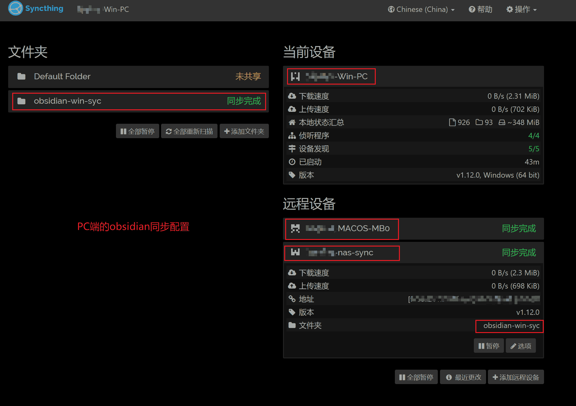 PC端的syncthing配置经过上述操作,现在可以远程访问NAS、远程同步obsidian,关键是以后可以自己做网盘,自己做各种策略来管理散布在不同地方的文件和数据,效率提升很多,也很方便。希望这篇文章对大家有用。