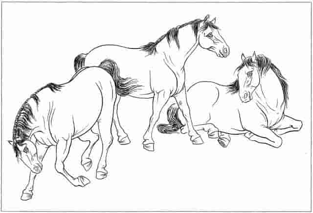 干货!分享15张高清白马白描线稿素材,艺术生快收藏起来临摹吧