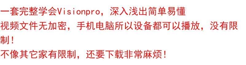 一套完整学会Visionpro,深入浅出简单易懂 视频文件无加密,手机电脑所以设备都可以播放 cra استفاده 限! 不像其它家有限制,还要下载非常麻烦!