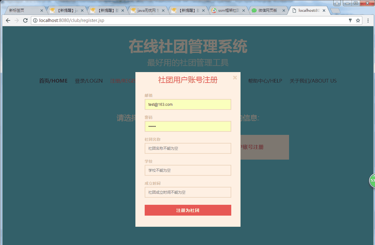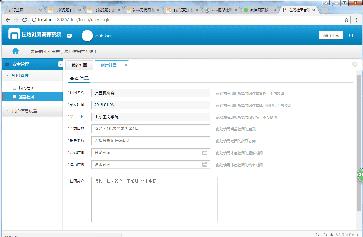 java大学生在线社团管理系统源代码 jsp系统项目设计源码带文档