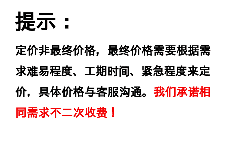 定价非最终价格,最终价格需要根据需求难易程度、工期时间、紧急性来定价,具体价格与客服沟通。我们承诺相同需求不二次收费!