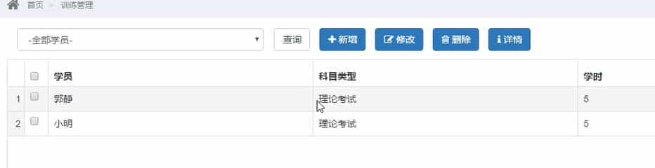 6、训练管理:管理员可以添加、修改、删除训练信息。