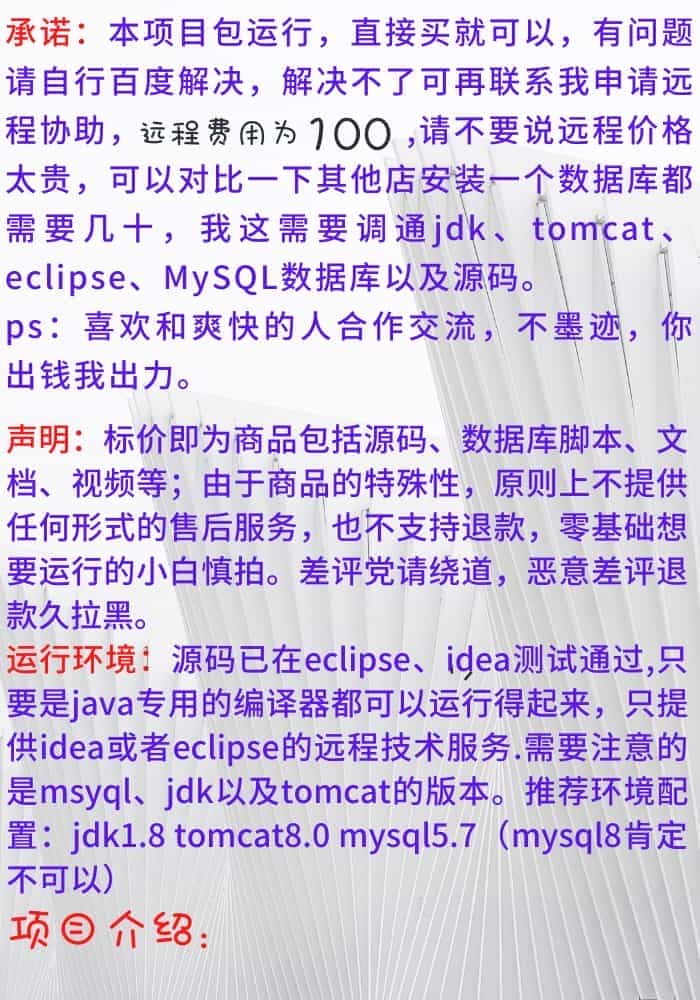 | 承诺: 本项目包运行, 直接买就可以,有问题请自行百度解决,解决不了可再联系我申请程序协助,远程费(力)100,请不要说远程价格太贵,可以对比一下其他店 Page Up锱 教练姓名:江明 手机号:13468954714 身份证号:513122197406064301 教练车辆:川A6841X 车辆型号: 学员:郭静 科目类型:理论考试 学时:5 学员:小明 科目类型:理论考试 学时:5 驾校管理系统。教练管理、学员管理、训练管理、科目设置、训练记录、系统管理、个人信息管理。 价格说明: 划线价格:商品的专柜价、吊牌价、正品零售价、厂商指导价或该商品曾经展示过的销售价等,并非原价,仅供参考。 未划线价格:商品的实时的标价,不因表述的差异改变性质。具体成交价格根据商品参加活动,或会员使用优惠券、积分等发生变化,最终以订单结算页价格为准。 商家详情页所展示的优惠金额是根据用户当前可使用的优惠券、满减、立减,可参与的特定活动(如多件多折、限时秒杀)等四舍五入计算得出,优惠获取及使用条件等详见活动页面及相关规则(如有),实际价格以结算页面展示为准。 此说明仅当出现价格比较时有效,具体请参见《淘宝价格发布规范》。若商家单独对划线价格进行说明的,以商家的表述为准。 ![]() |