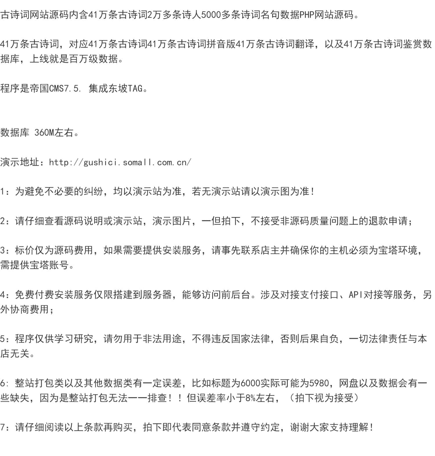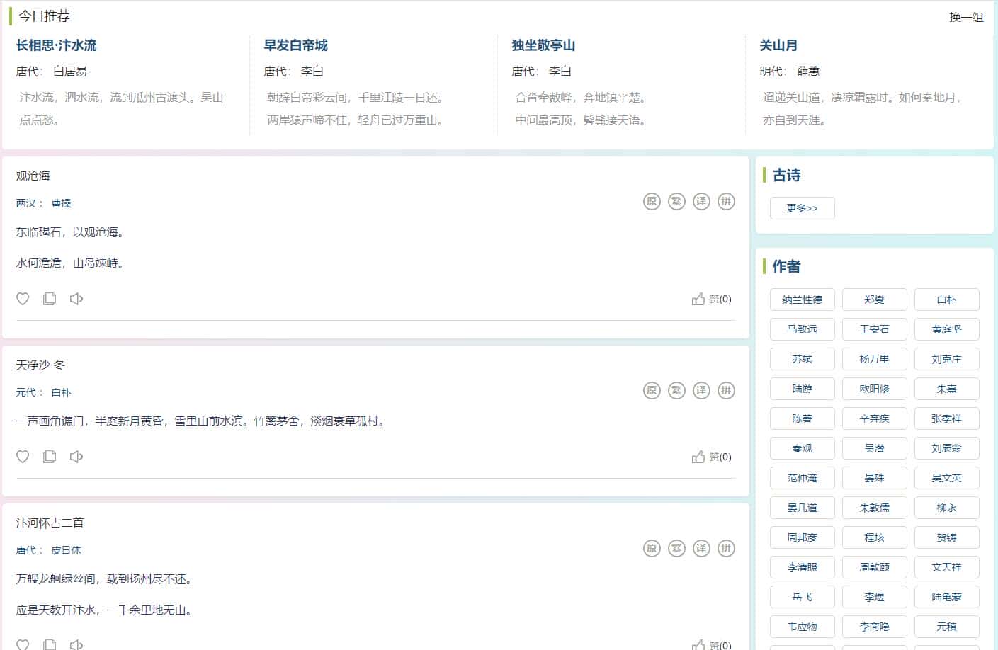 古诗词网站源码内含41万条古诗词2万多条诗人数据PHP网站源码