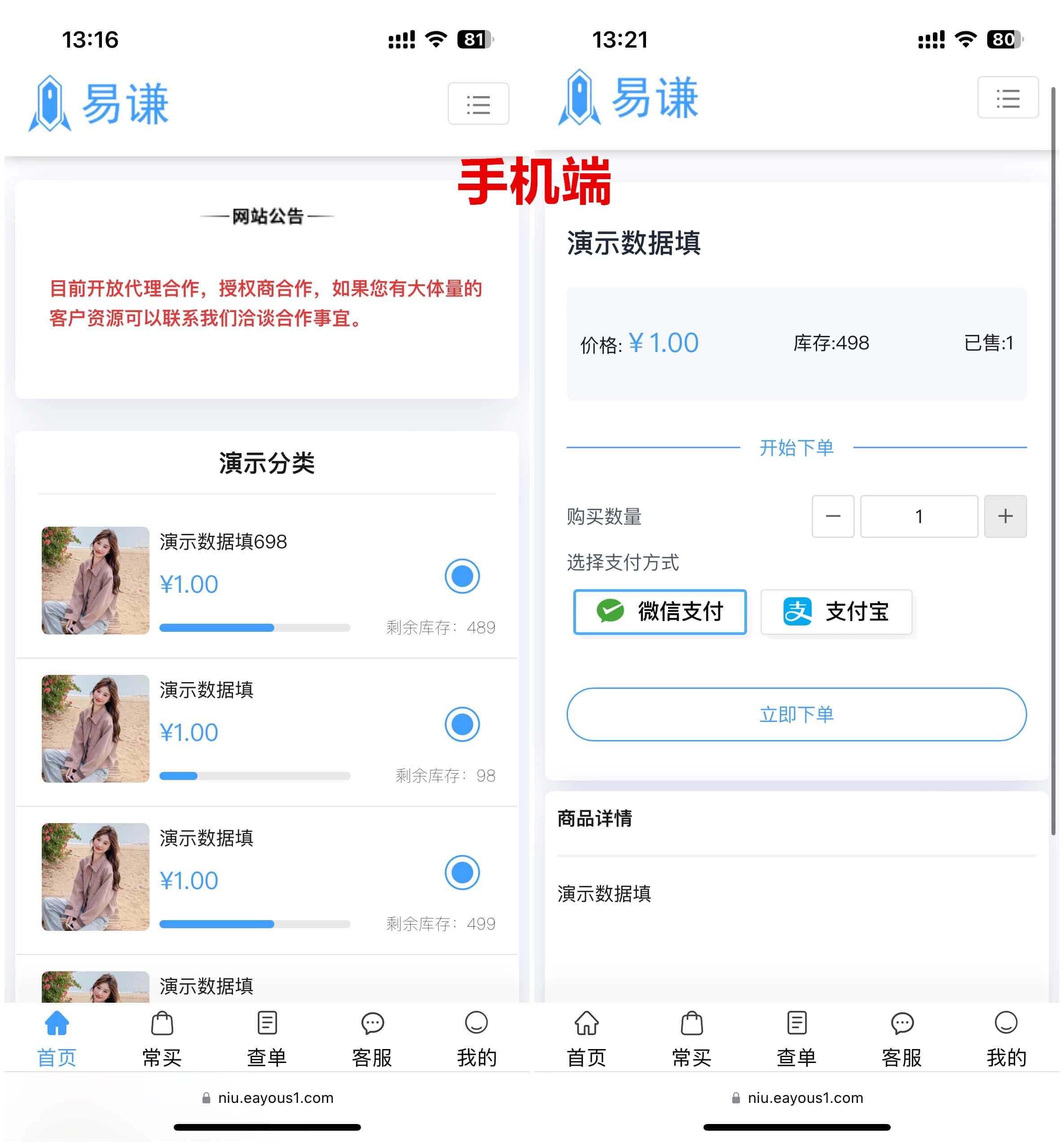 演示站:niu.eayous1.com