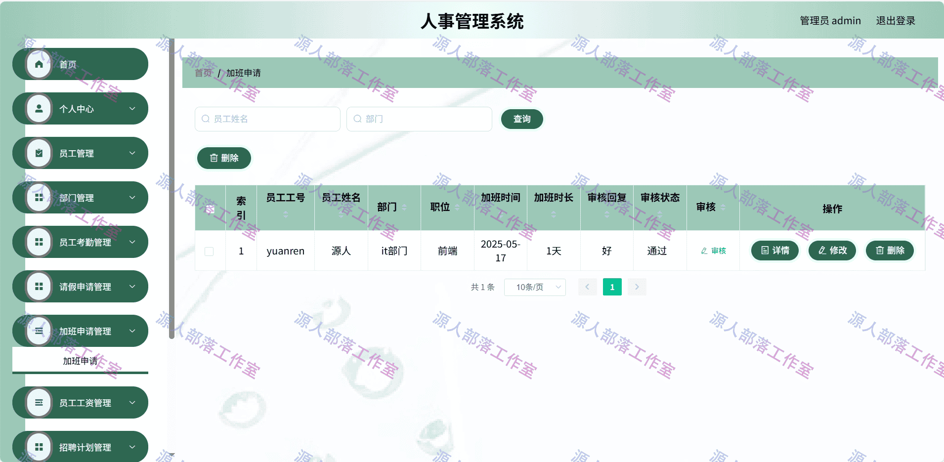 人事管理系统 springboot vue前后端分离 javaweb源码赠送文档ppt