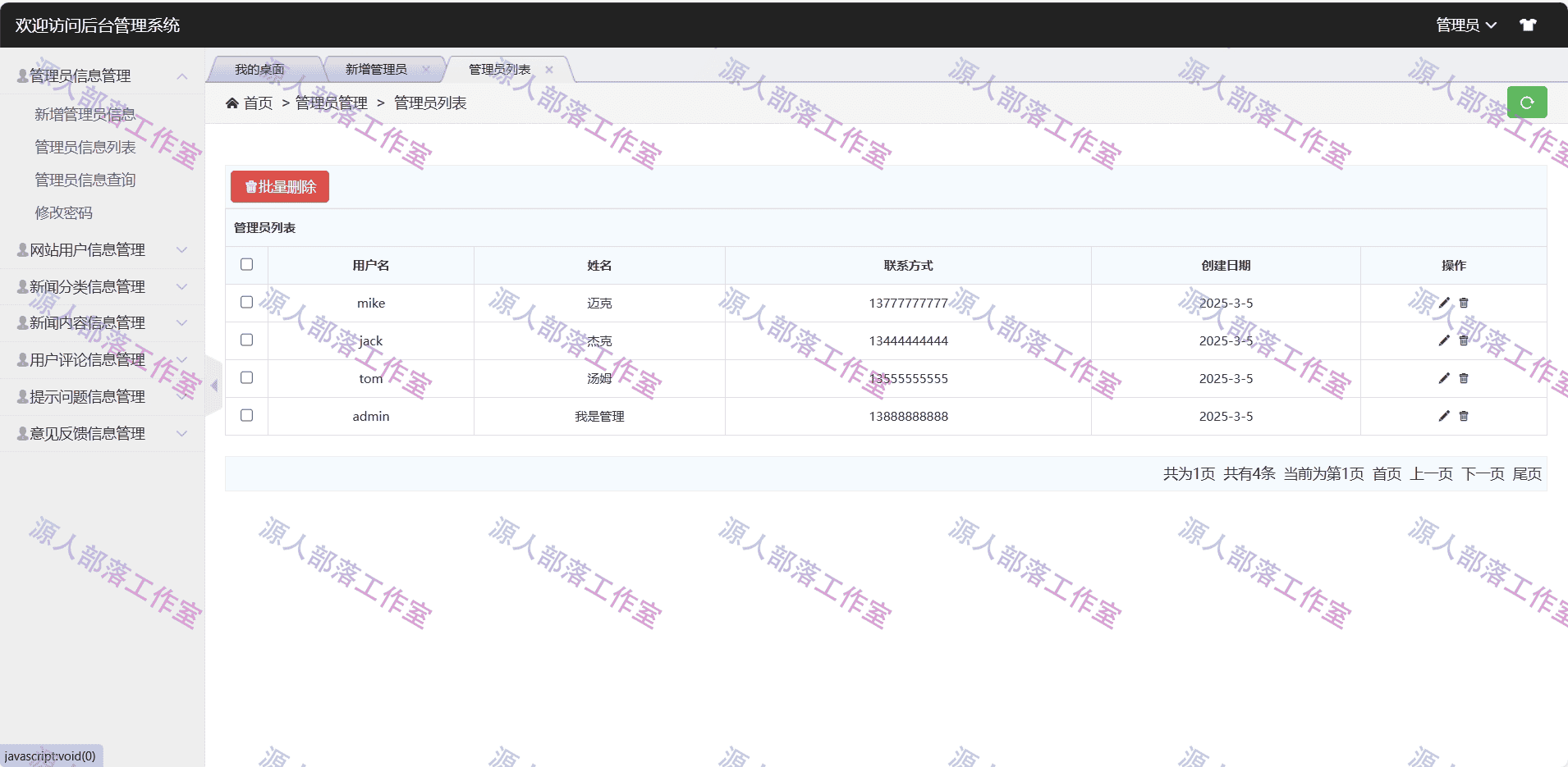 新闻管理系统网站ssm spring mvc jsp javaweb作业项目源码送文档
