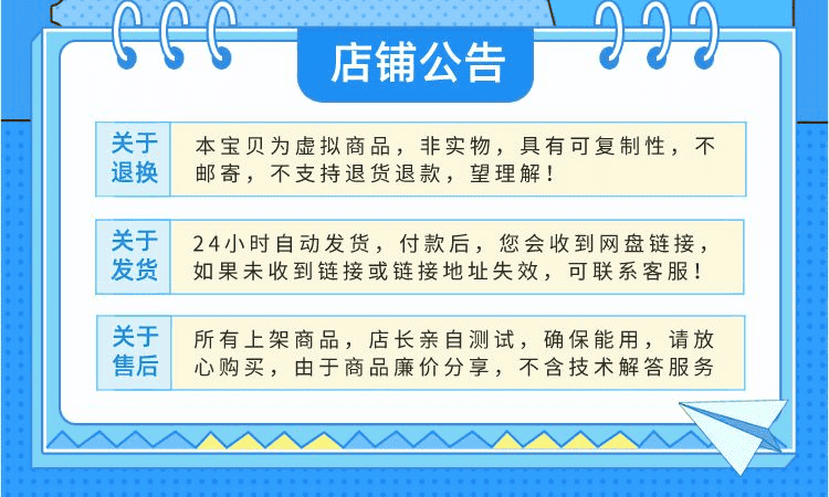 24小时自动发货,付款后,您会收到网盘链接,如果未收到链接或链接地址失效,可联系客服!