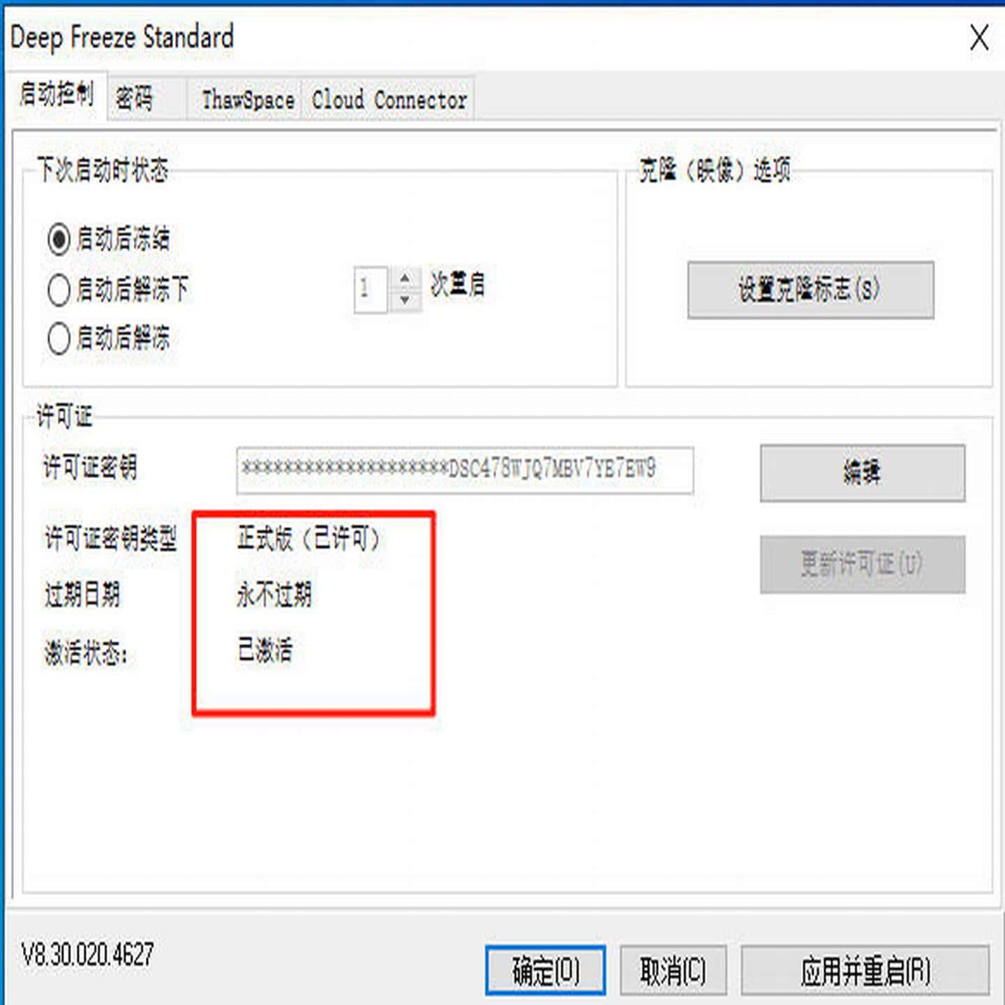 冰点还原精灵/deep freeze/重启还原/激活码激活/网吧模式