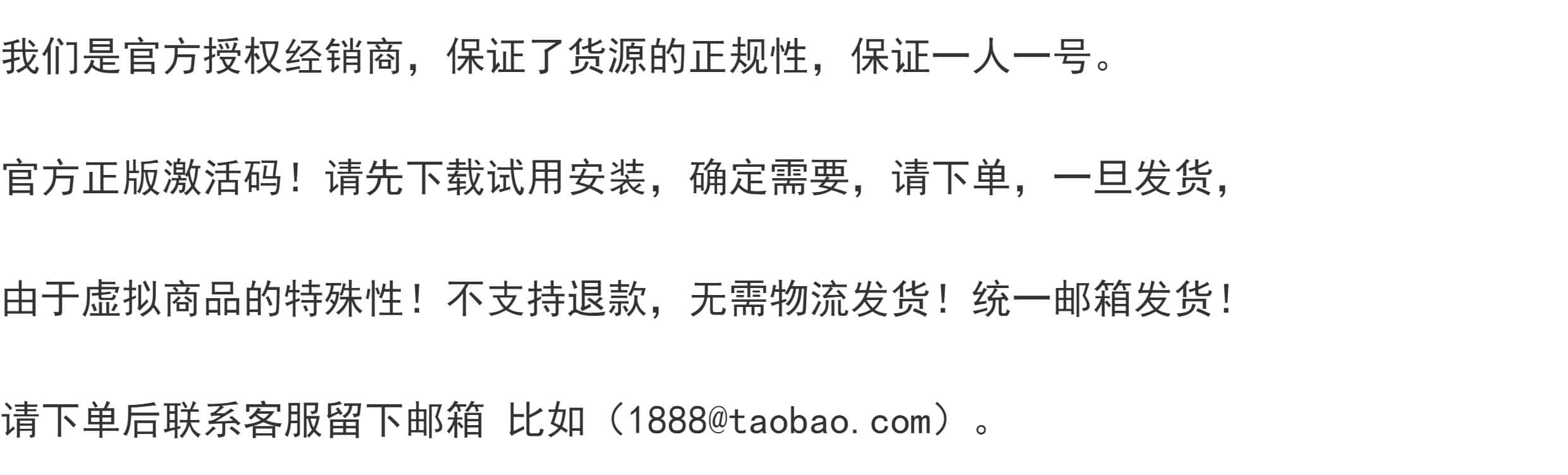 • 3、点卡软件商品,默认按商品详情作为纠纷评判依据(特别声明或有商定除外);