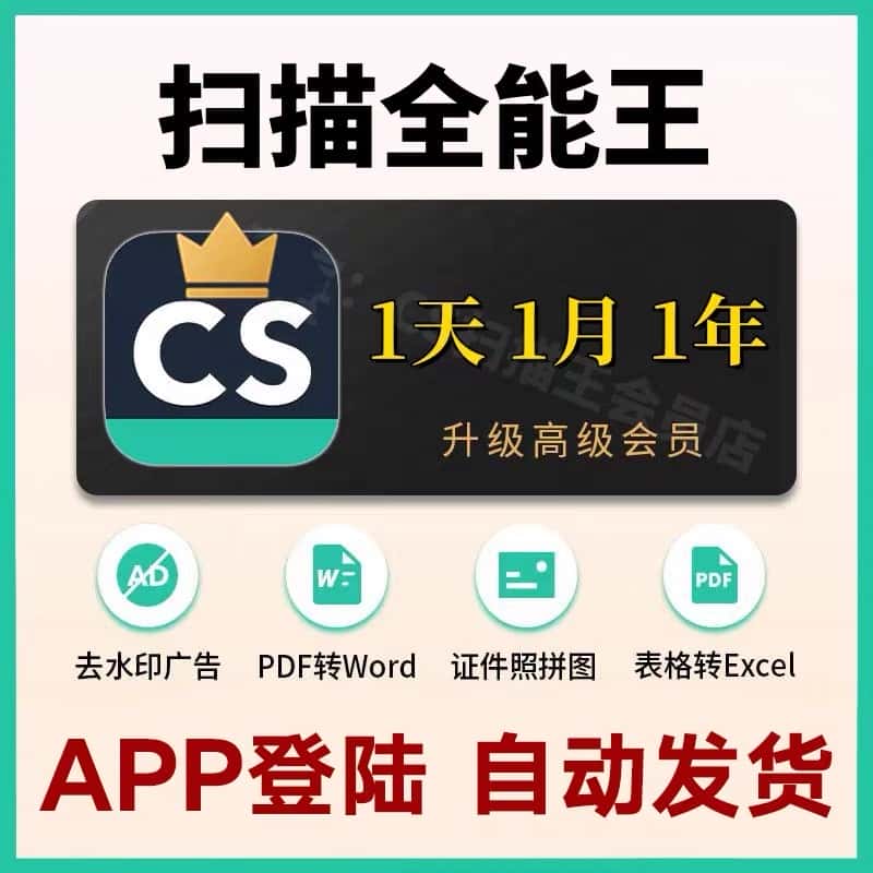 扫描全能王会员一小时去水印PDF手机版VIP一天OCR证件高级账户