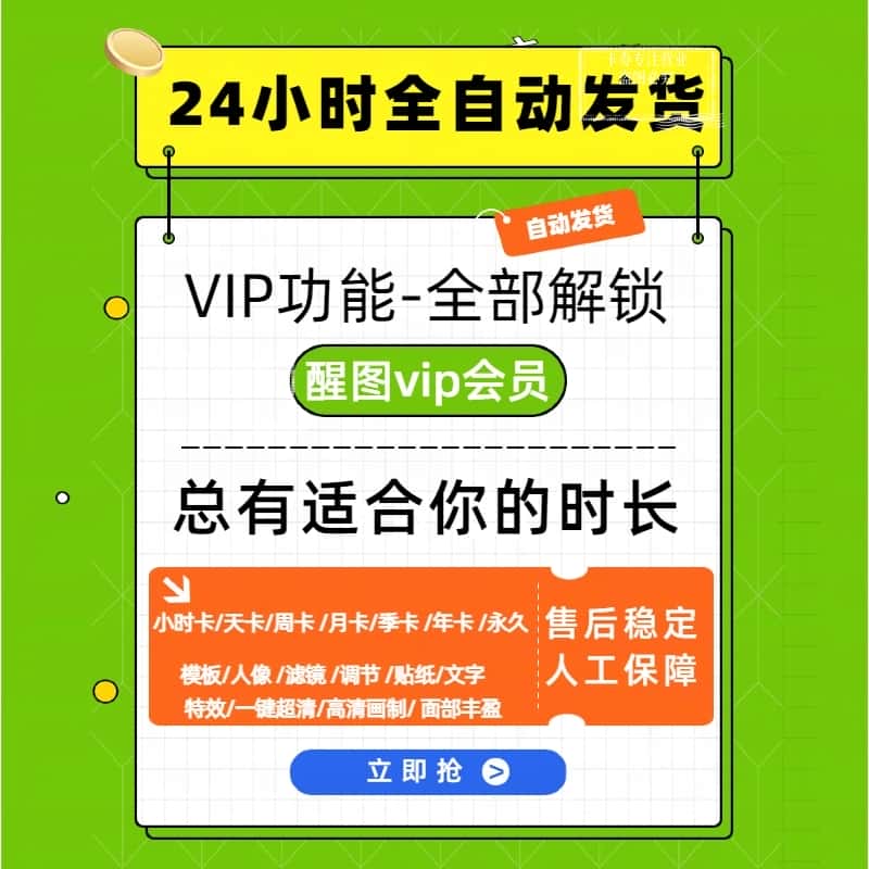 醒图VIP会员1小时天周月年卡 调色滤镜模版带ai魔法消除 苹果安卓
