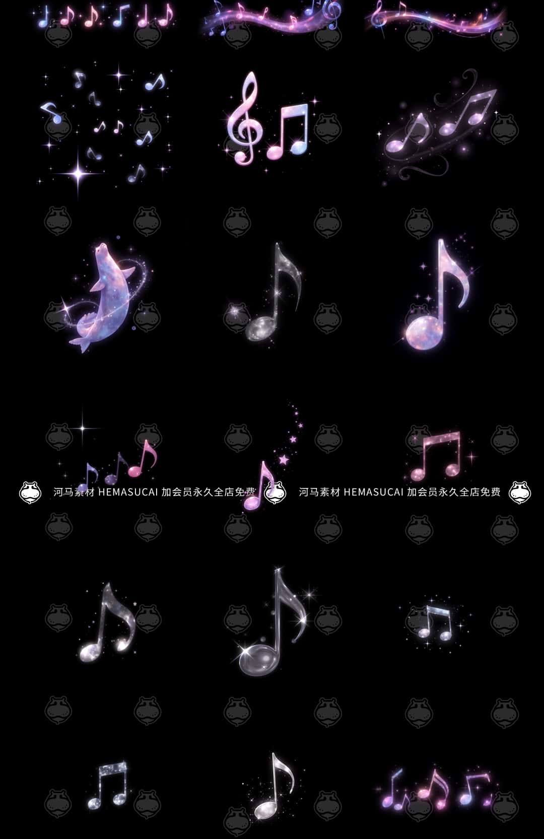 原创可商用梦幻飘逸流动音乐符号高清PNG免抠图饭圈文游美工素材
