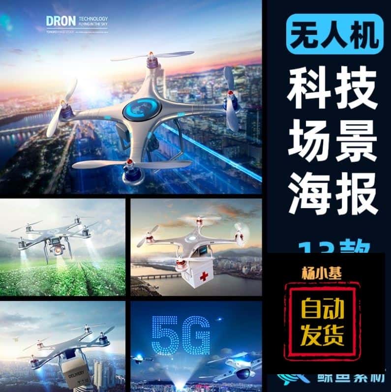 高端未来简约无人机投快递主题场景智能科技海报设计素材PSD模板