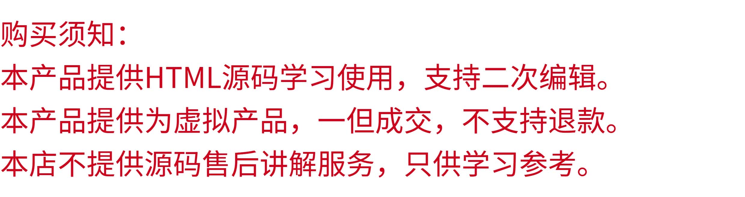 • 1、源码类:商品详情(含标题)与实际源码不一致的(例:描述PHP实际为ASP、描述的功能实际缺少、功能不能正常使用等)!有演示站时,与实际源码不一致的(但描述中有"不保证完全一样、可能有少许偏差"类似显著公告的除外);