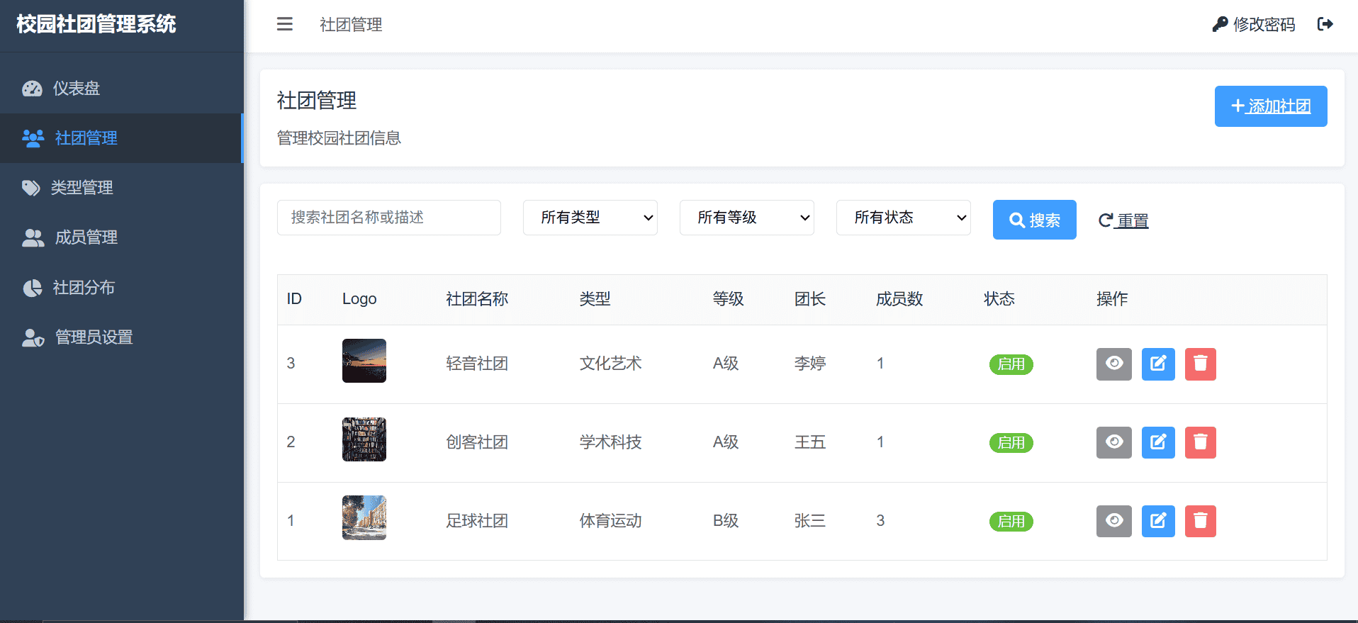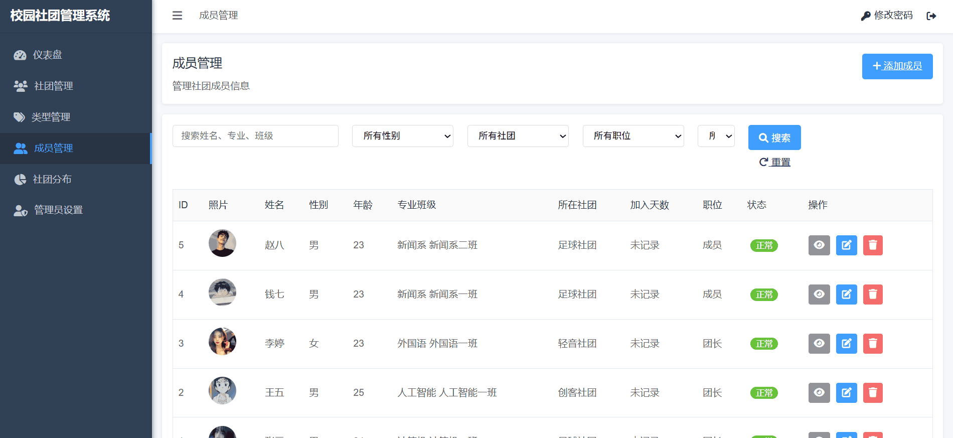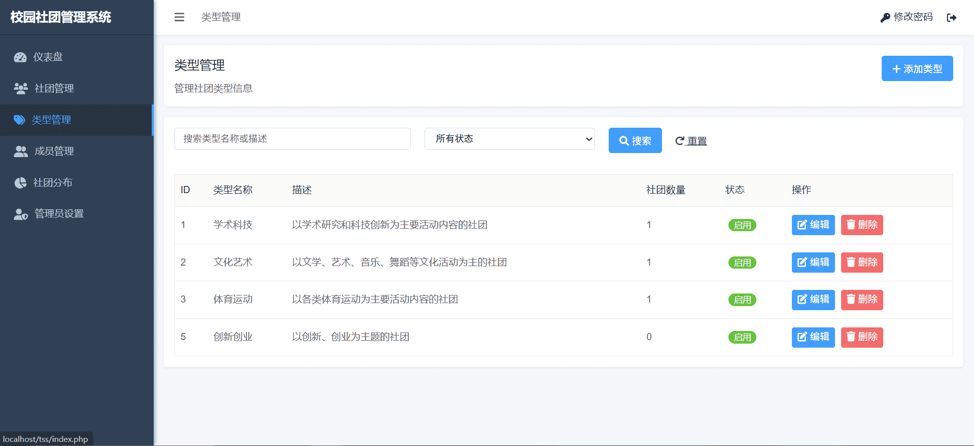 php校园社团管理系统网站源码期末作业毕设增删改查网页设计mysql