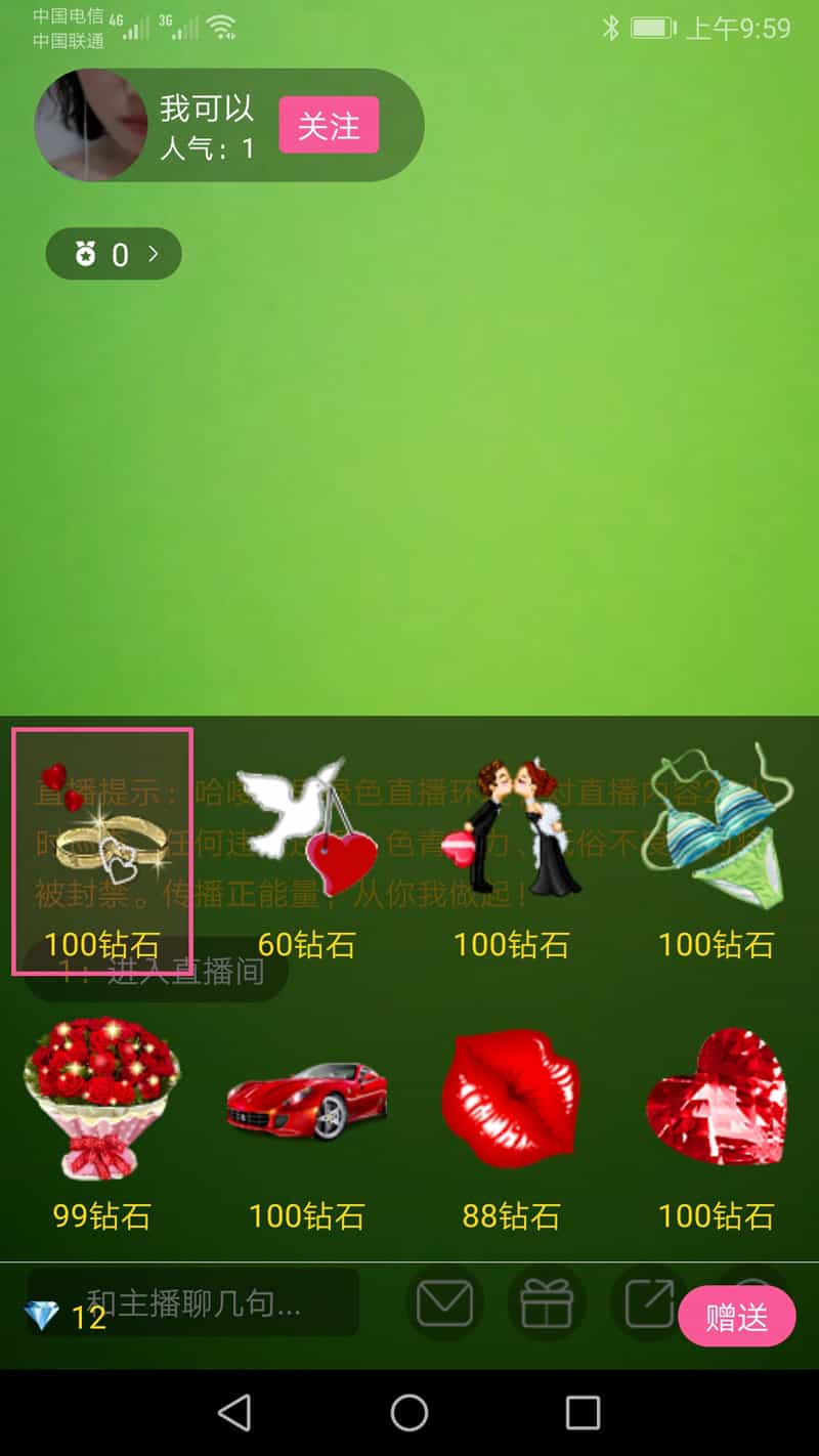 4:可以向主播发送礼物打赏