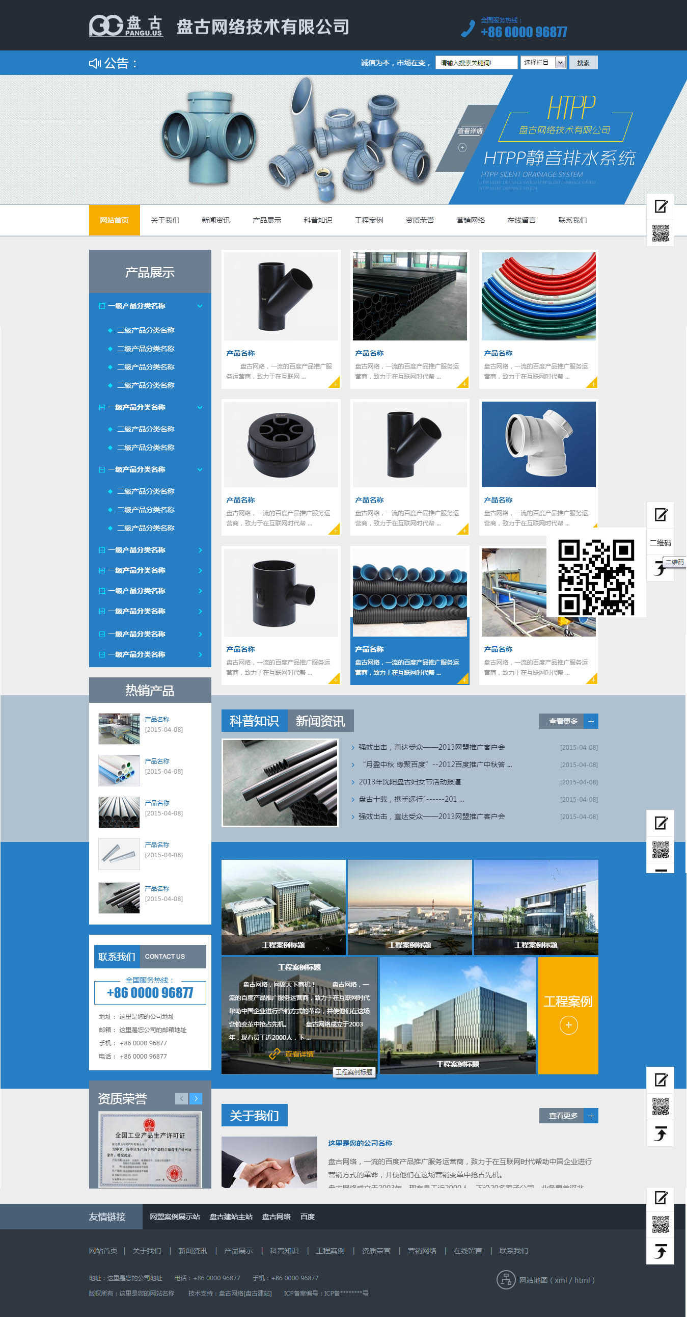 1、首页、单页、404错误提醒页、在线留言页、搜索页、新闻首页、新闻列表页、新闻内容页、产品列表页、产品内容页。