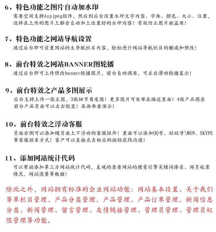 另外还需要支持ASPJEPG,JMAIL组件,用于打水印和发送邮箱功能