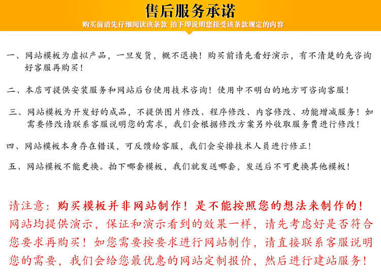 1、源码类:商品详情(含标题)与实际源码不一致的(例:描述PHP实际为ASP、描述的功能实际缺少、功能不能正常使用等)!有演示站时,与实际源码不一致的(但描述中有"不保证完全一样、可能有少许偏差"类似显著公告的除外);