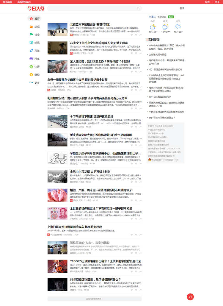 演示地址: | 样式一: PC端:http://toutiao.cquz.com.cn/ 手机版:http://m-toutiao.cquz.com.cn/ 样式二:<UTF-8编码、不带会员投稿,手机版仿今日头条> ¥150.00 样式三: ¥150.00 《织梦版》 电脑版: http://dm007.129100.com/ (新改版)——news 手机版: 手机访问自动跳转 (新改版)——news |