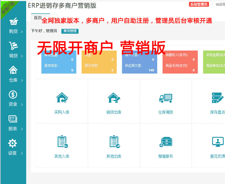 2020全新版多商户多仓库带扫描进销存系统 ERP管理系统 PHP源码Saas营销版 无限开商户