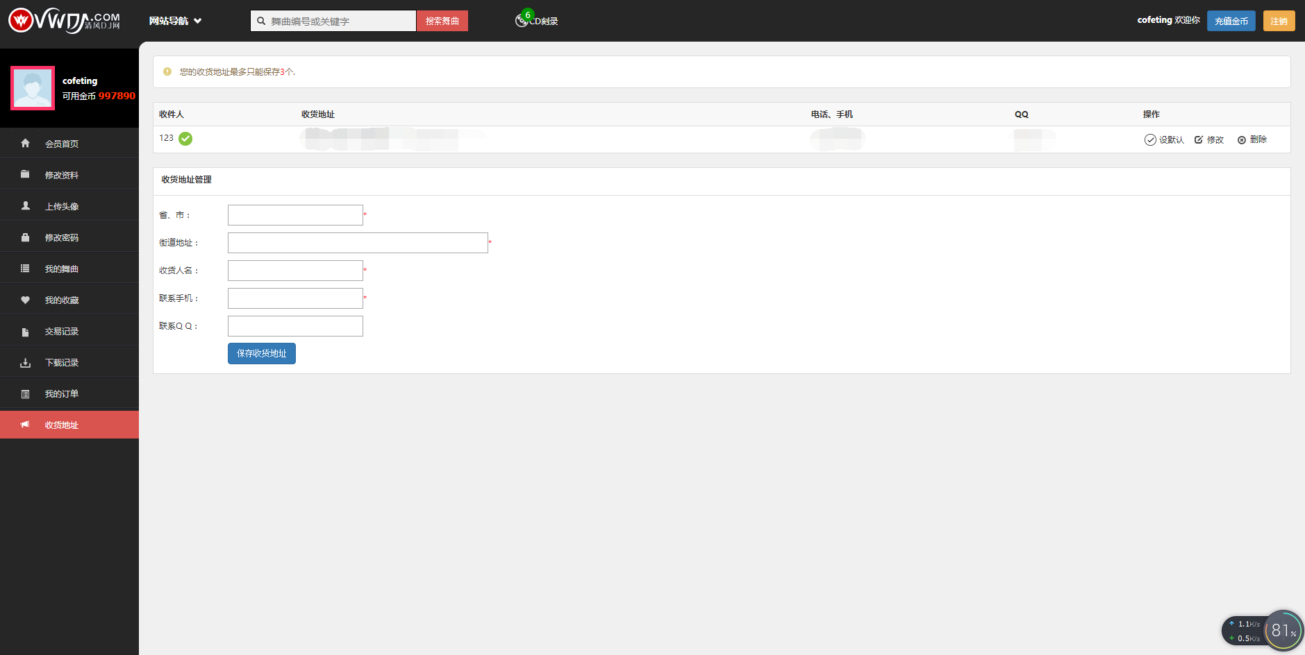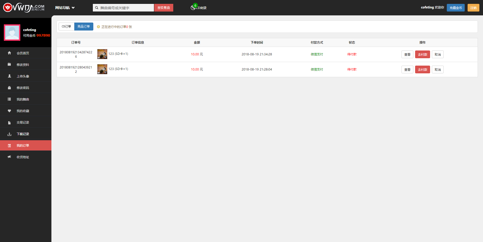功能支持:选择歌曲加入刻录 U盘SD卡套餐购买 订单记录 收货地址 订单查询 增加修改套餐等等。