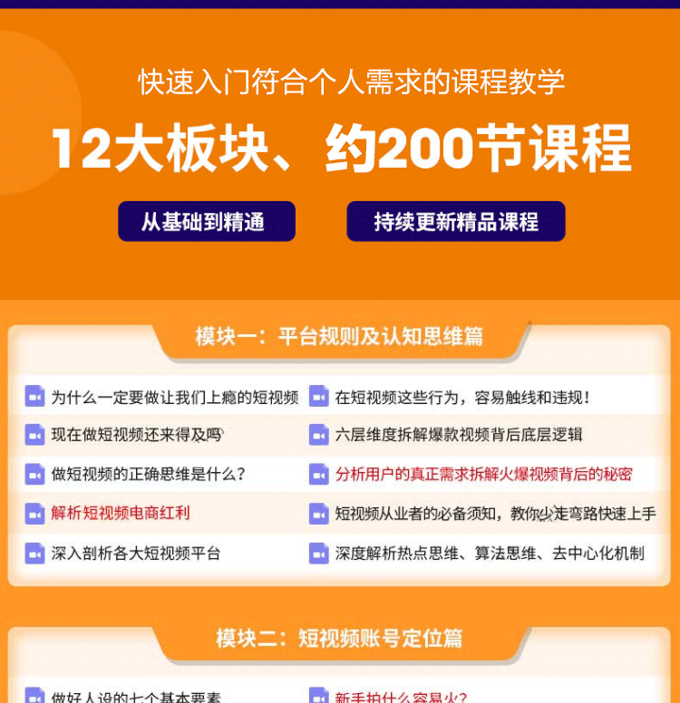 新款短视频运营教程电商直播卖货自媒体拍摄剪辑营销推广全套课程