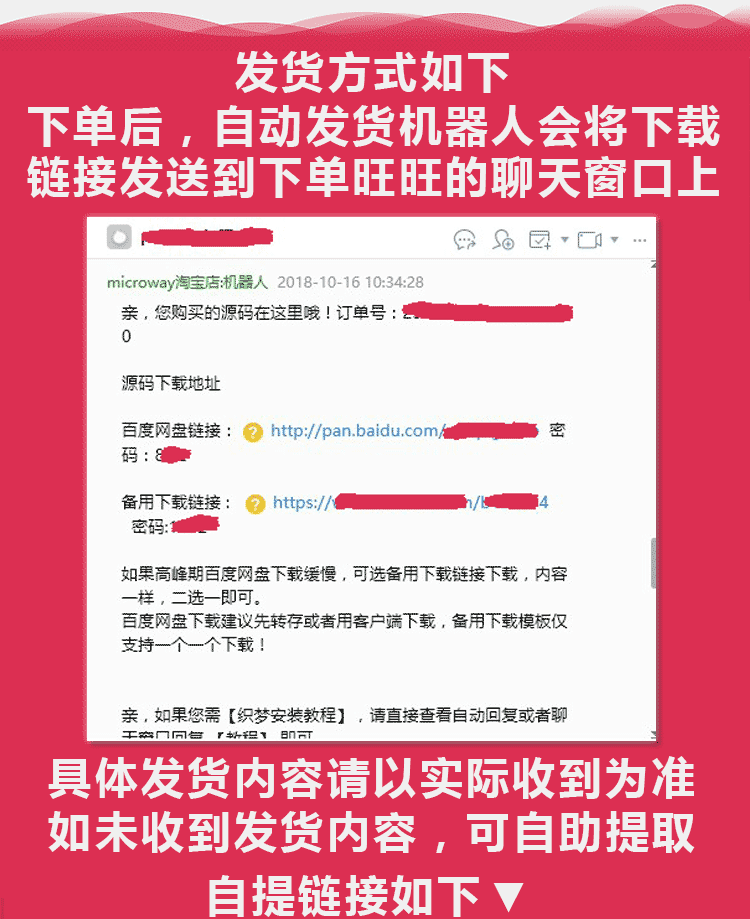 自动:在特色服务中标有自动发货的商品,拍下后,源码类 软件类 商品会在订单详情页显示来自卖家的商品下载链接,点卡类 商品会在订单详情直接显示卡号密码。
