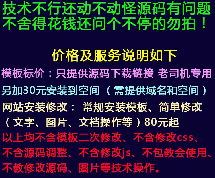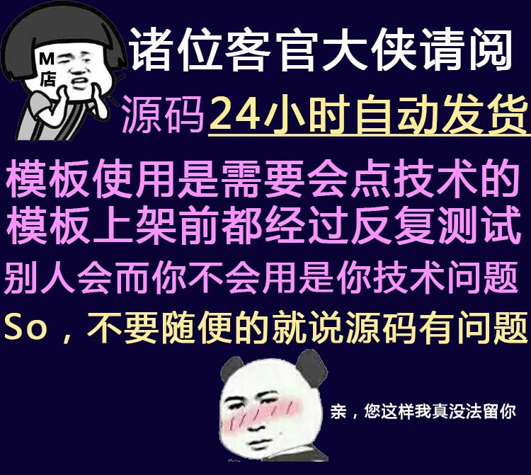 1、源码类:商品详情(含标题)与实际源码不一致的(例:描述PHP实际为ASP、描述的功能实际缺少、功能不能正常使用等)!有演示站时,与实际源码不一致的(但描述中有"不保证完全一样、可能有少许偏差"类似显著公告的除外);