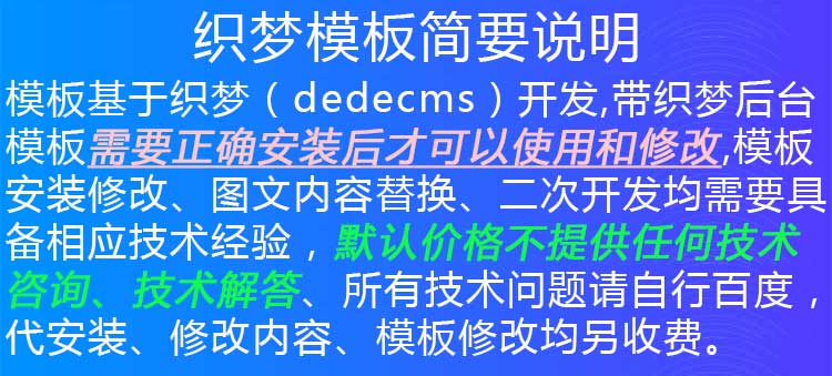 后端为 dedecms 5.7 sp2 默认样式。后端可编辑网站基本信息如站点名称、声明、栏目信息、文章发布管理、模板源文件修改等功能。具体参考织梦官网后端操作说明。