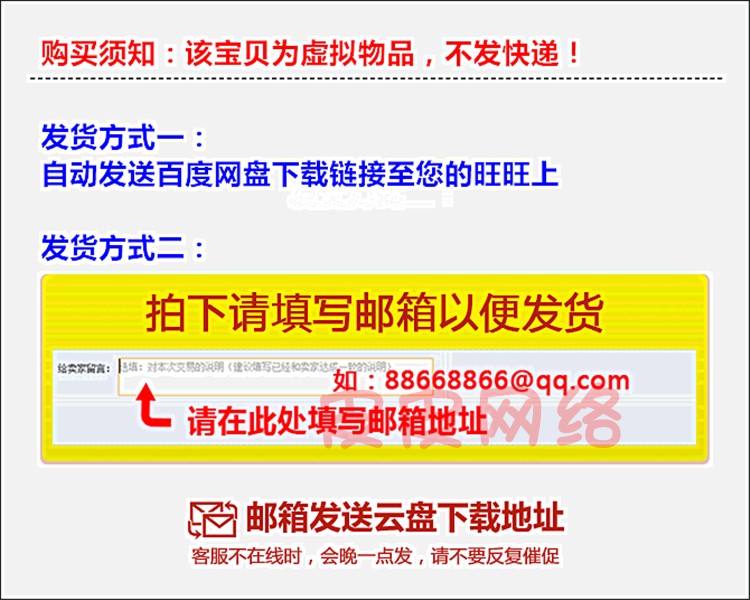 • 自动:在特色服务中标有自动发货的商品,拍下后,源码类 软件类 商品会在订单详情页显示来自卖家的商品下载链接,点卡类 商品会在订单详情直接显示卡号密码。