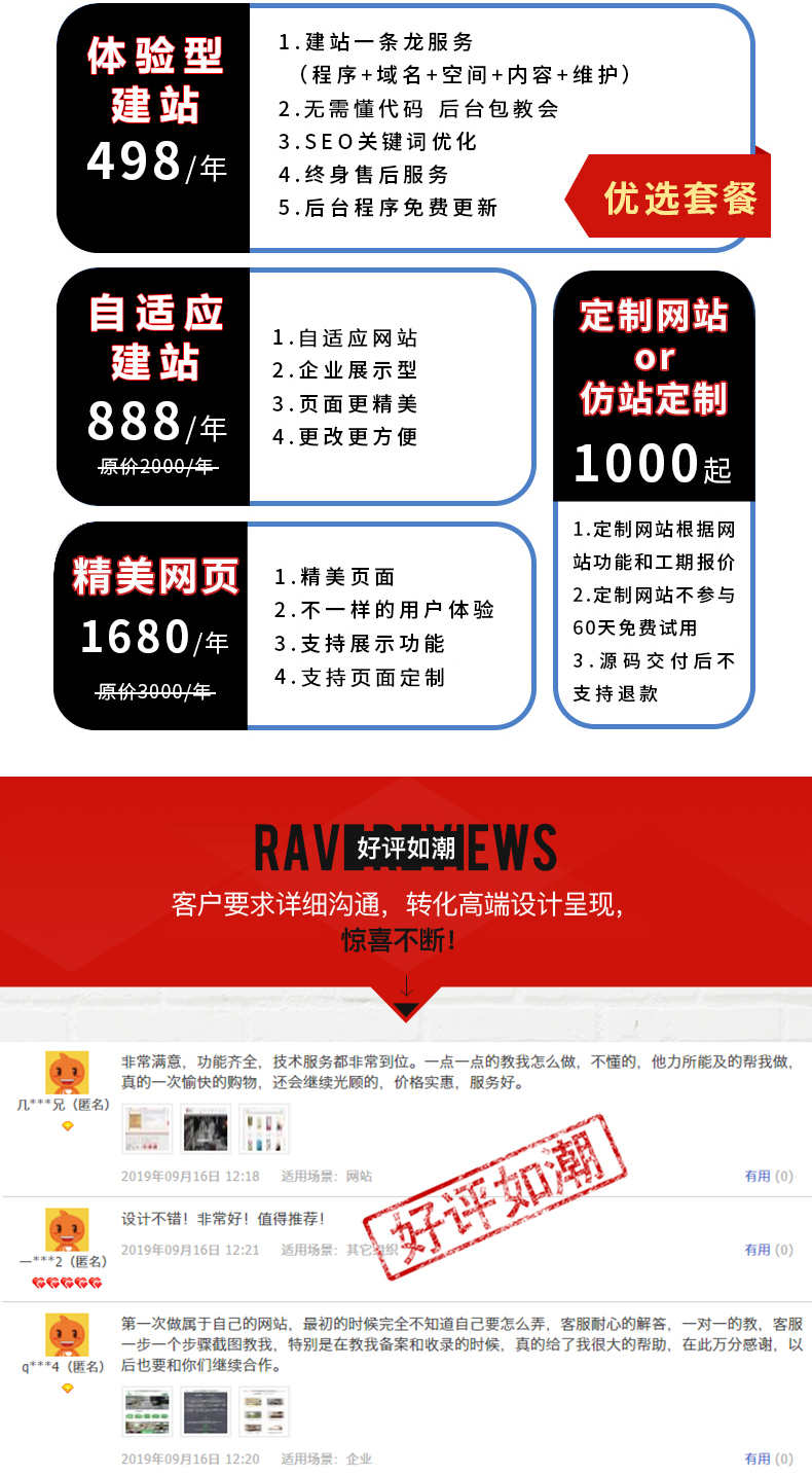 不懂安装的老板们不要焦急,这边也有298元的包安装服务,并赠送虚拟主机(挣个辛苦费,您单独买个主机也不少钱了)。换句话说就是您只需拥有一个域名,剩下的都交给我们这边就可。