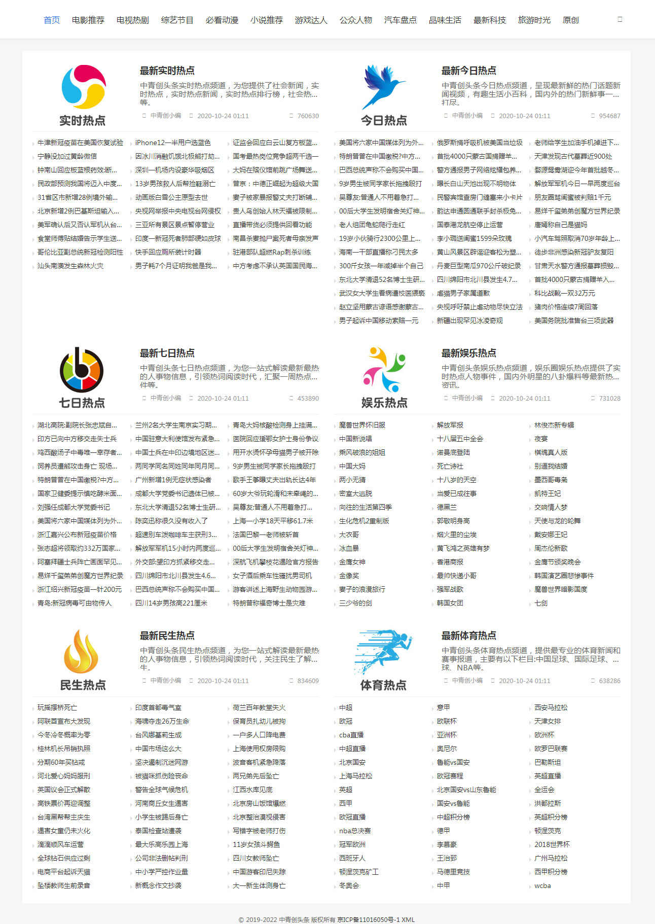 不止支持实时热点新闻词采集,整站源码里有实时热点、电影、电视剧、综艺节目、动漫、小说、游戏、人物、汽车、生活、科技、旅游栏目,也就是说每个栏目采集12个行业信息的关键词!里面还有小栏目,所以不知12个栏目的采集信息canonica标签,页面权重集中以前的功能无需再说。