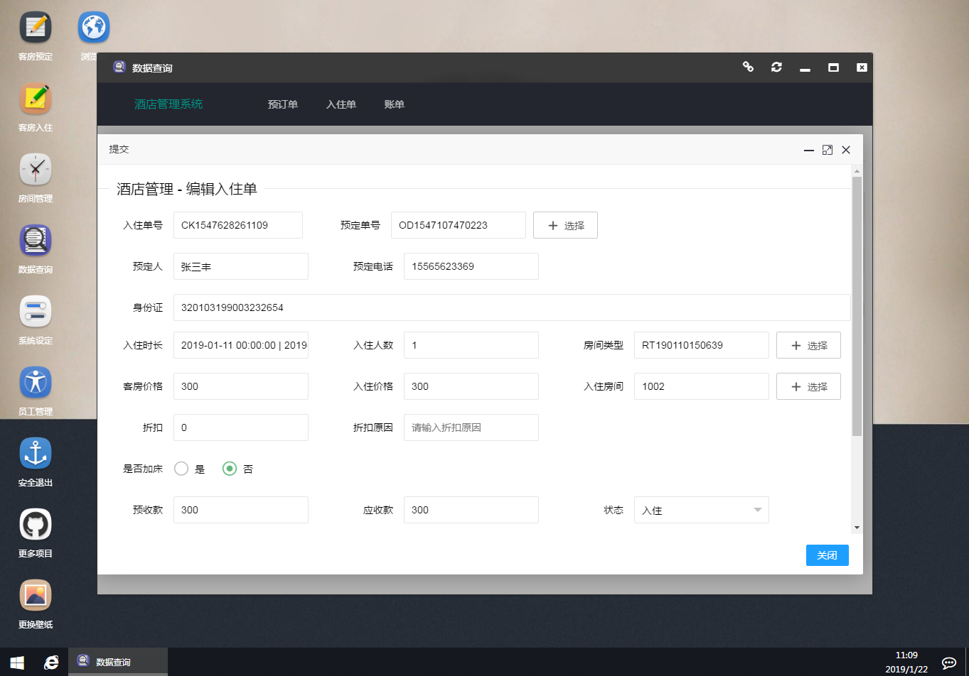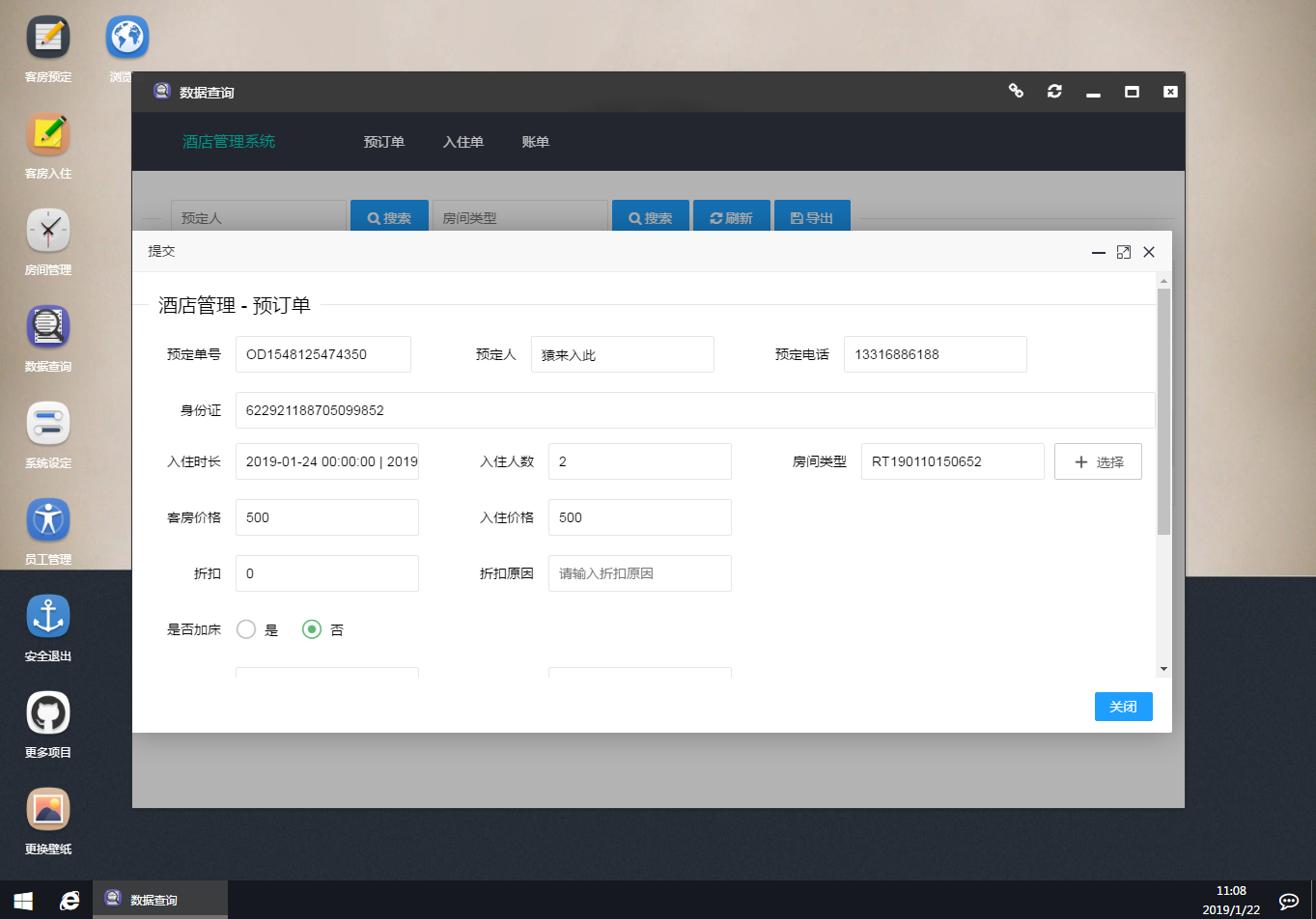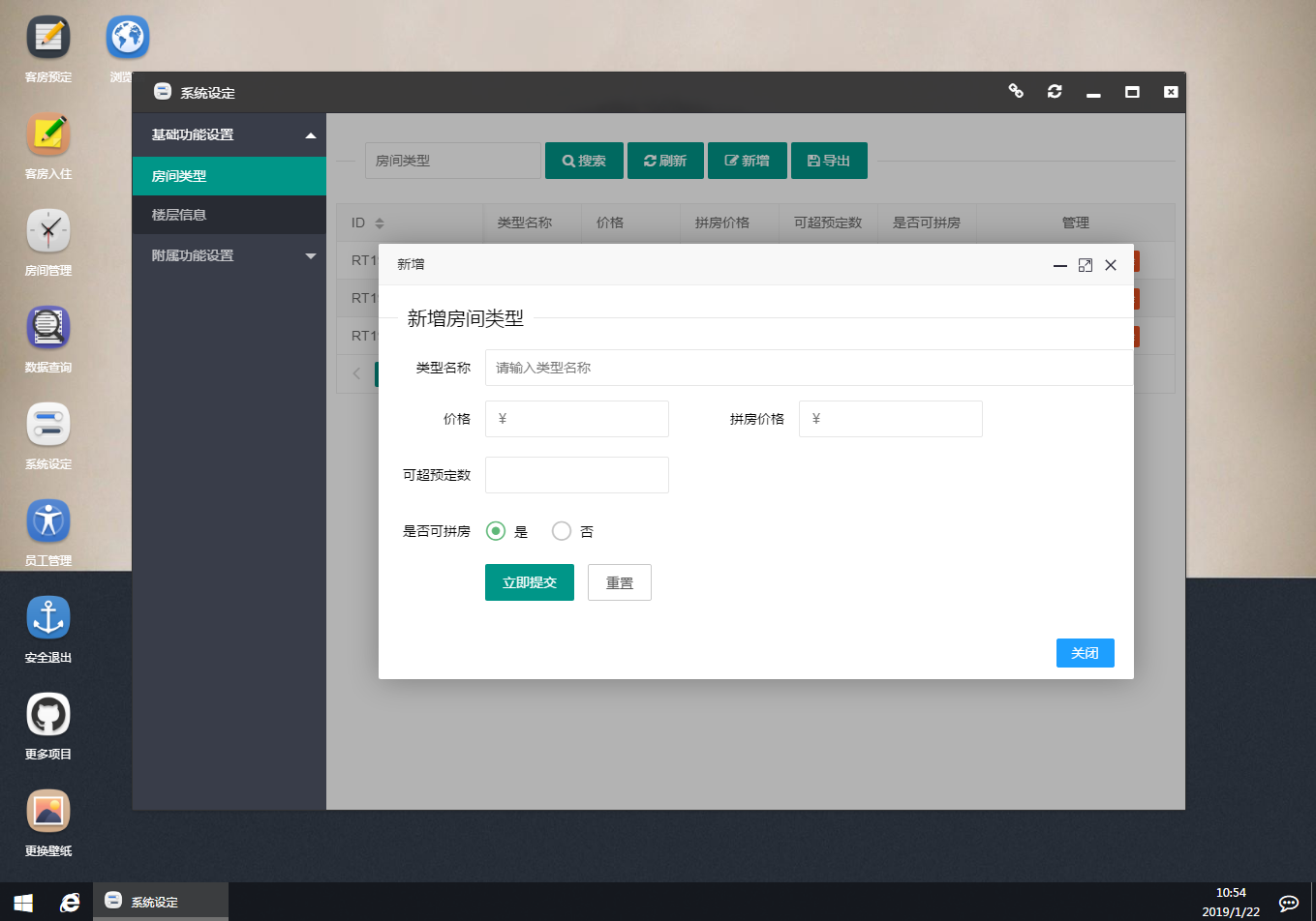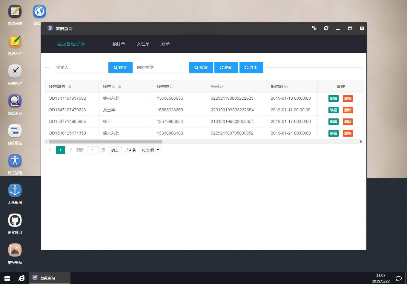 今天给大家演示的是一款由jsp servlet mysql实现的酒店管理系统,后端没有用到框架,用的是基础的servlet,前台用了一个仿win10的界面模板和layui前台框架,界面非常漂亮大气。主要实现的功能有:管理员登录、楼层管理、房型管理、房间管理、预约管理、入住管理、查看账单、日志管理、客户管理等,所有管理列表页面都提供了导出到excel的功能。此外还可以设置系统背景壁纸,非常方便。本项目资料目前包含有完整项目源码和视频导入运行教程,关于修改页面文字版权信息的视频里也会讲,视频教程可提前观看,地址是:https://pan.baidu.com/s/1iHP_yICfg6nMMU413oj-yg(因为百度云在线播放会压缩,导致不清晰,请下载后全屏观看,超清晰的)。