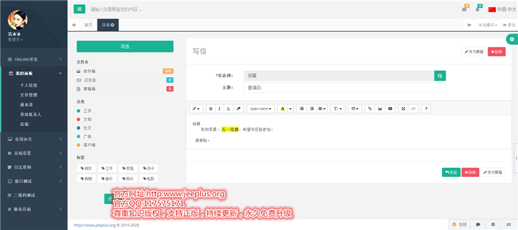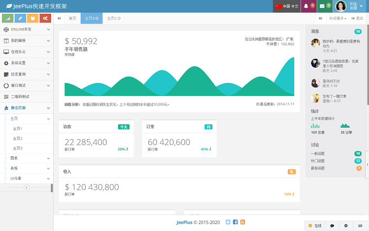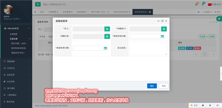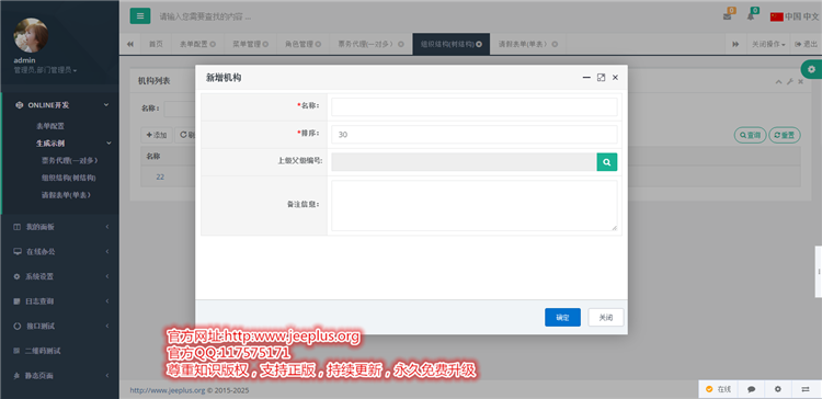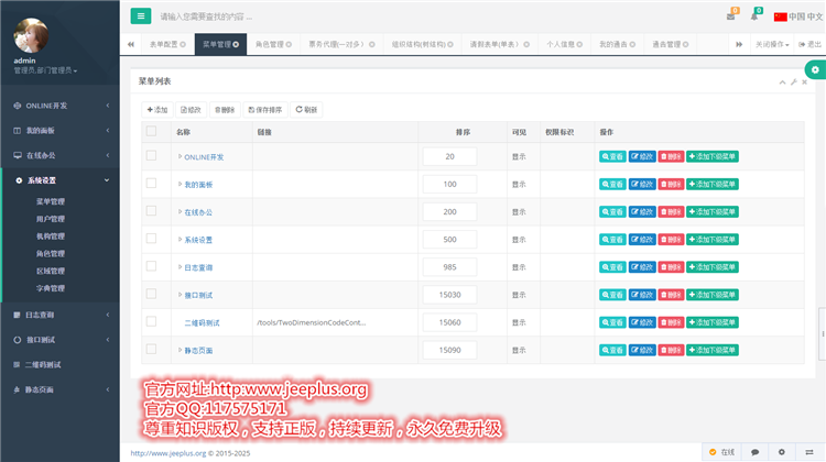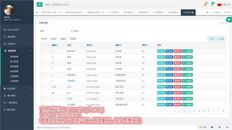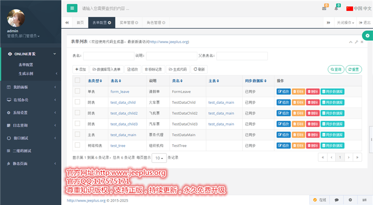 代码生成器, 可以在线编辑表单,而后自动创立数据库表和字段(无需手动去创立数据库表和字段),而后导出代码,生成前端jsp 到后端java的所有代码,生成的代码功能包括:增删查改,批量删除,排序,导出导入excel,权限到按钮,假如没有复杂的业务逻辑,无需手写一行代码。