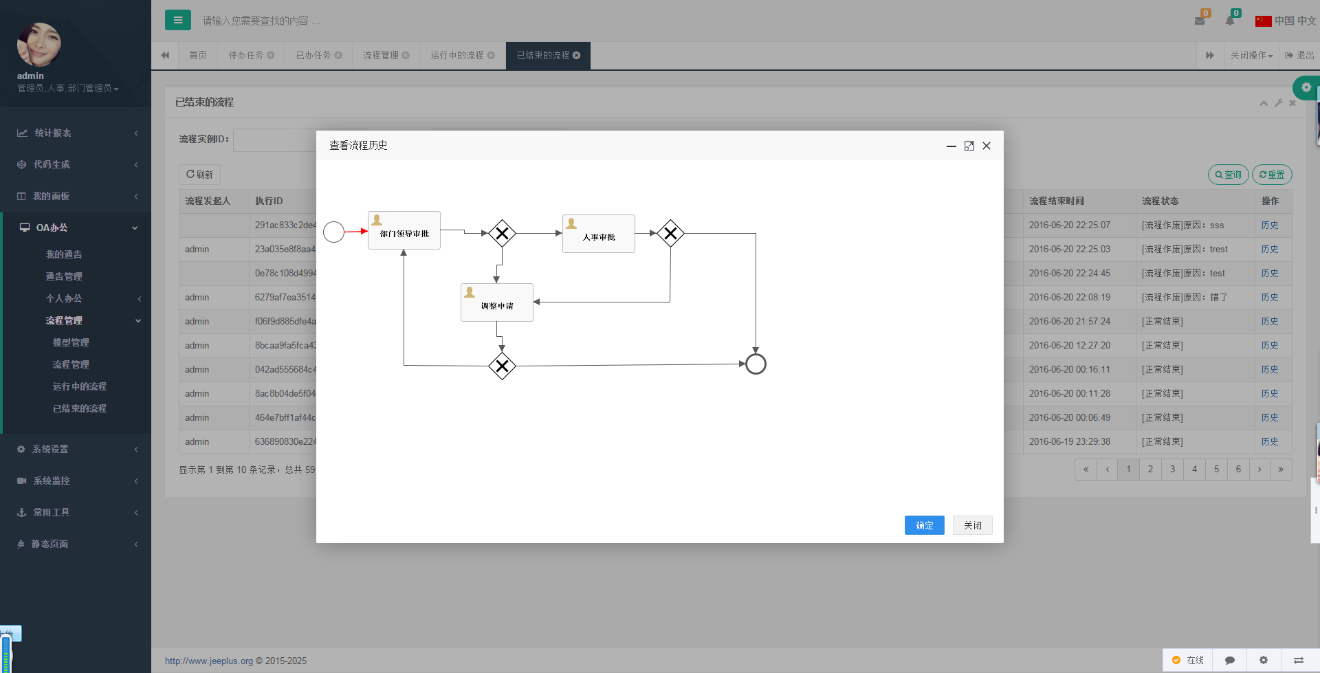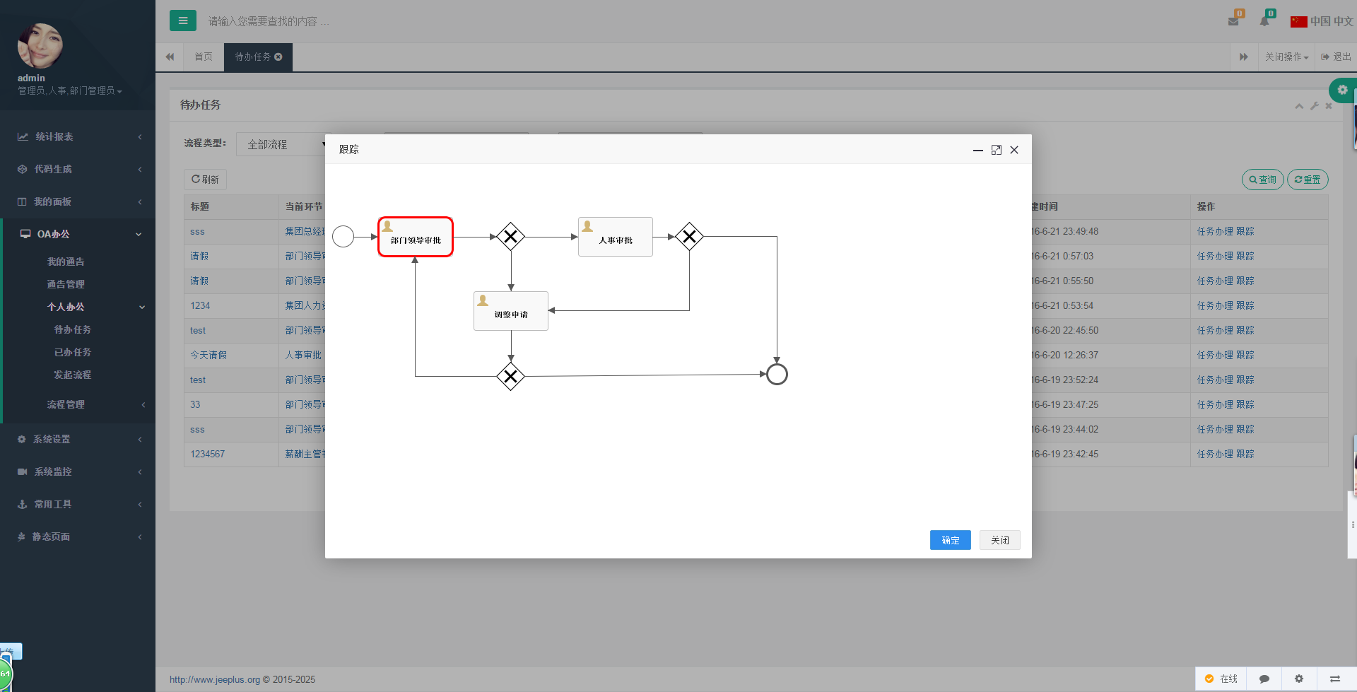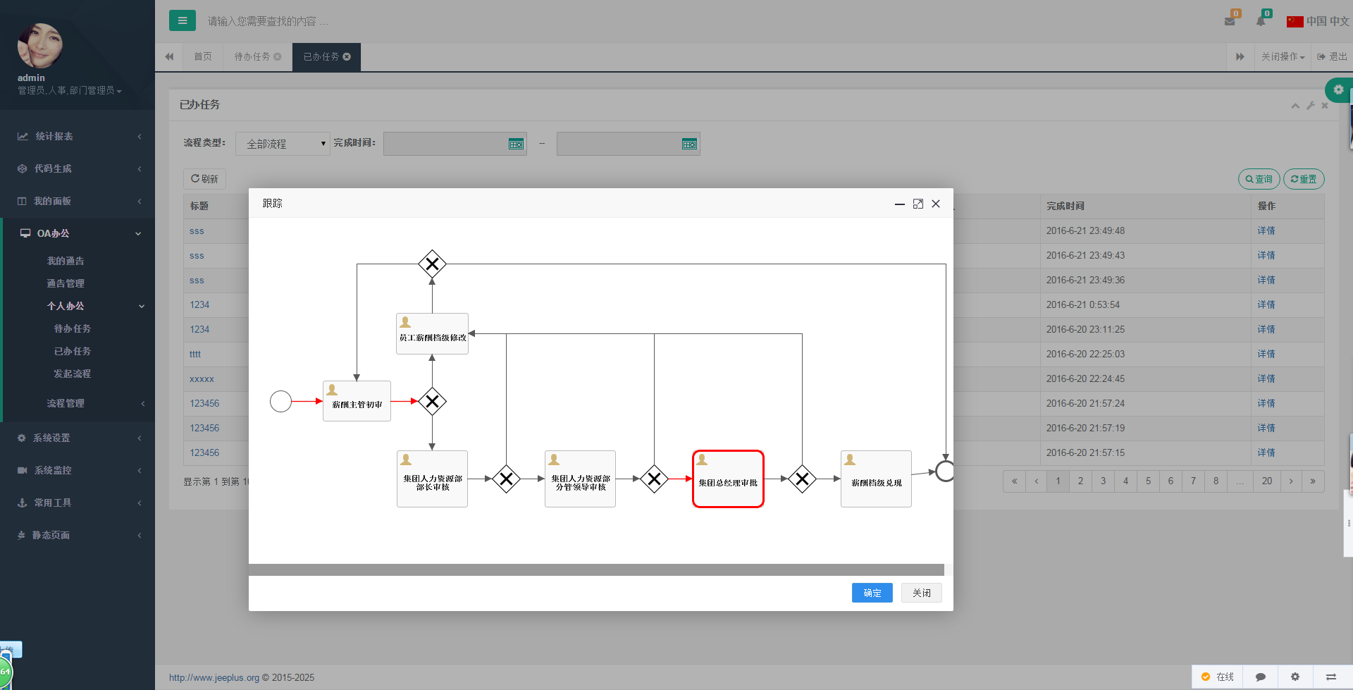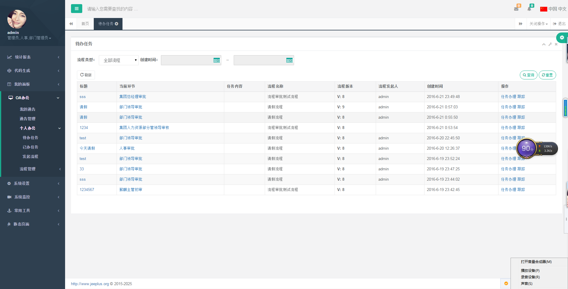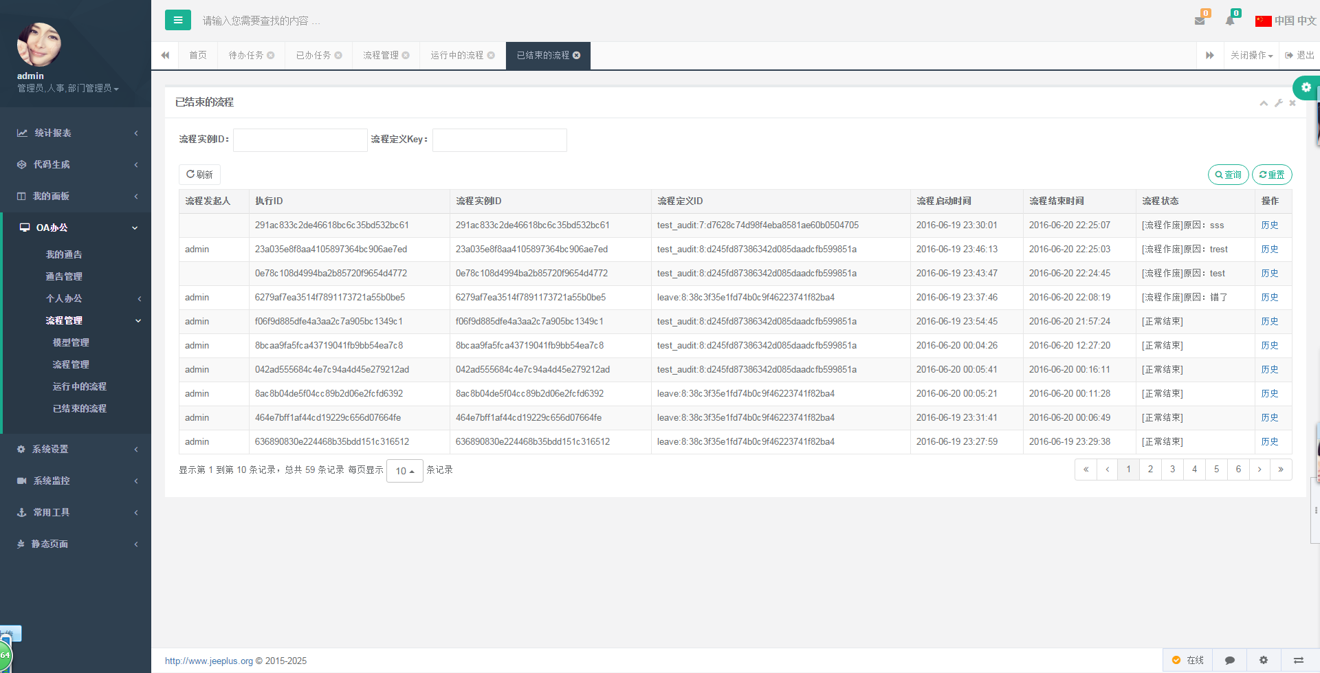 代码生成器,支持多种数据模型,根据表生成对应的Entity,Service,Dao,Action,JSP等,增删改查/排序/导出导入Excel/权限控制/功能生成直接使用 基础客户权限,强大数据权限,操作权限控制精密细致,对所有管理链接都进行权限验证,可控制到按钮,对指定数据集权限进行过滤 Excel导入导出,支持单表导出和一对多表模式导出,生成的代码自带导入导出Excel功能 查询过滤器,查询功能自动生成,后端动态拼SQL追加查询条件;支持多种匹配方式(全匹配/模糊查询/包含查询/不匹配查询) UI标签库,针对WEB UI进行标准封装,页面统一采用UI标签实现功能:封装了bootstrap风格的table,检索,部门选择 ,人员选择等常用控件。 国际化,支持多语言,多语言系统切换(测试中,即将发布) 集成百度Echarts,实现曲线图,柱状图,数据等报表 系统日志监控,详细记录操作日志,可支持追查表修改日志 WebSocket集成:集成在线聊天系统。 提供常用工具类封装,日志、缓存、验证、字典、组织机构等,常用标签(taglib),获取当前组织机构、字典等数据。 连接池监视:监视当期系统数据库连接池状态,可进行分析SQL找出系统性能瓶颈。 提供APP接口,可以快速和移动APP整合。 支持多种浏览器: IE, 火狐, Google 等浏览器访问速度都很快 支持数据库: Mysql,Oracle数据库的支持,但不限于数据库,平台留有其它数据库支持接口等