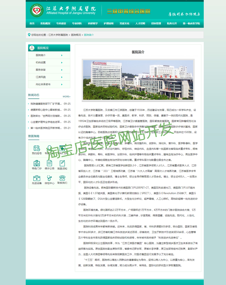 这是一个综合医院网站建设案例,网站整体色调采用绿色,白色,灰色混合配色。