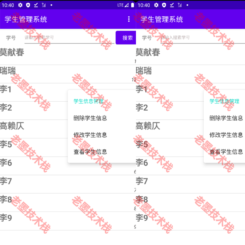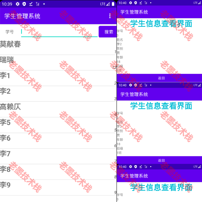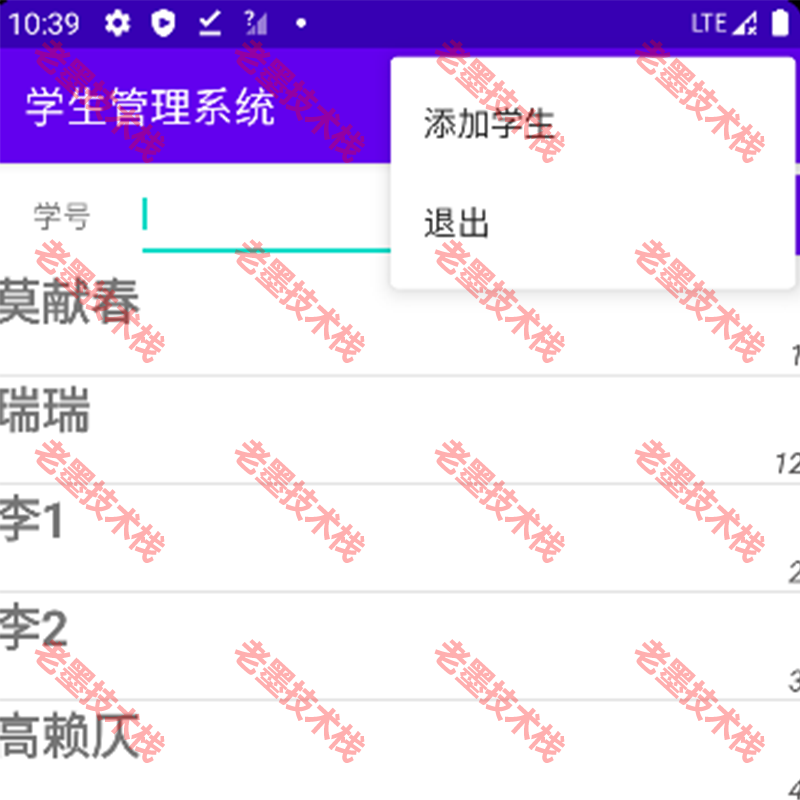 项目功能:Android项目学生管理系统,项目主要实现功能,登录,添加学生信息,删除学生信息,查找学生信息,更改学生信息,退出管理系统功能。